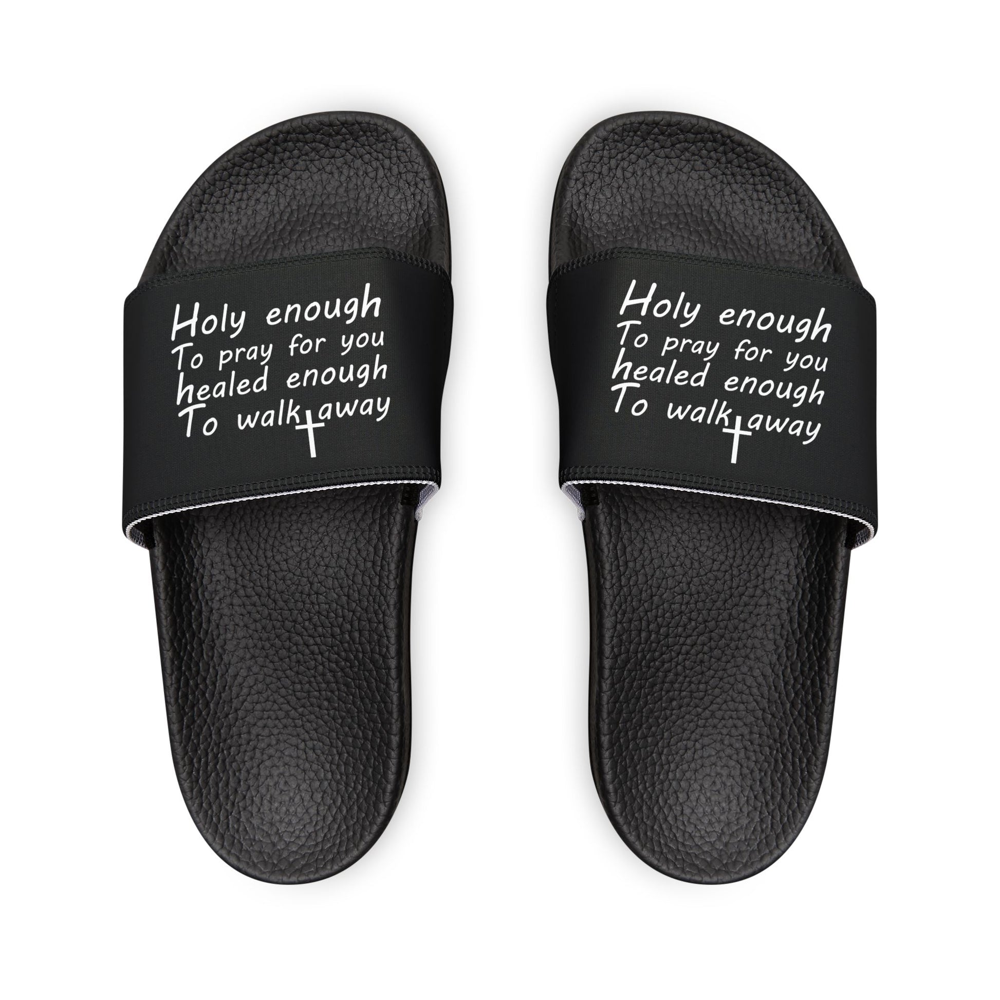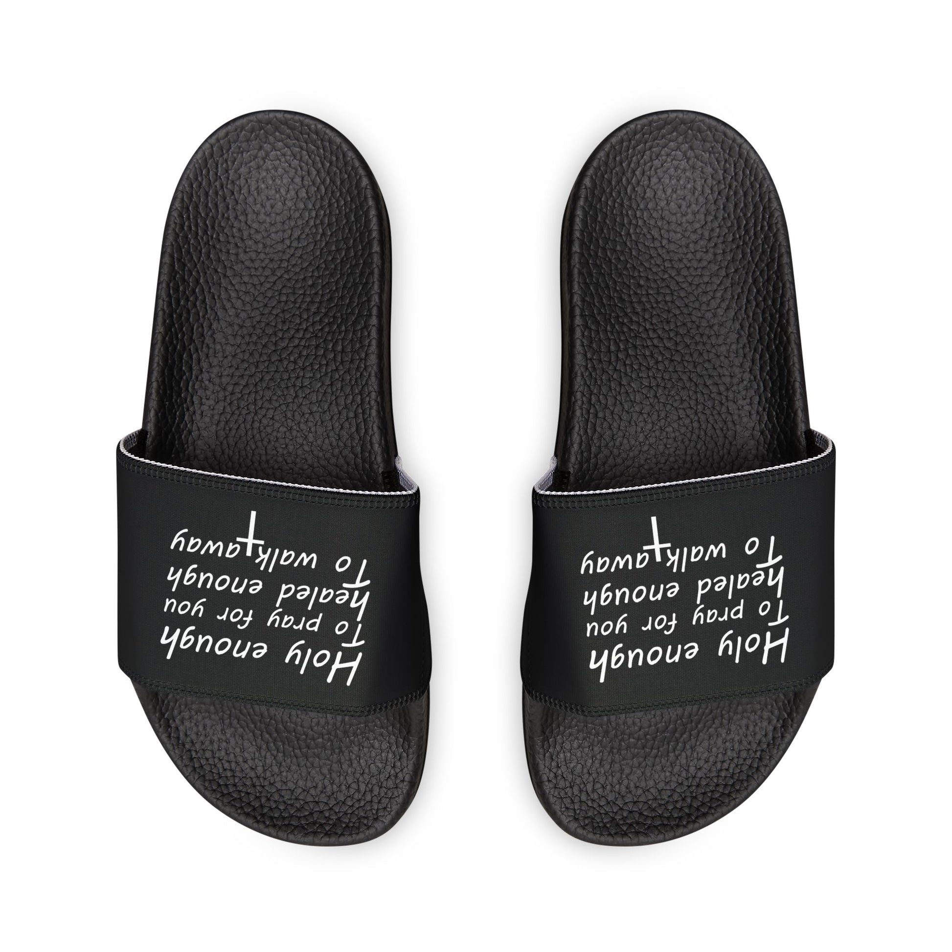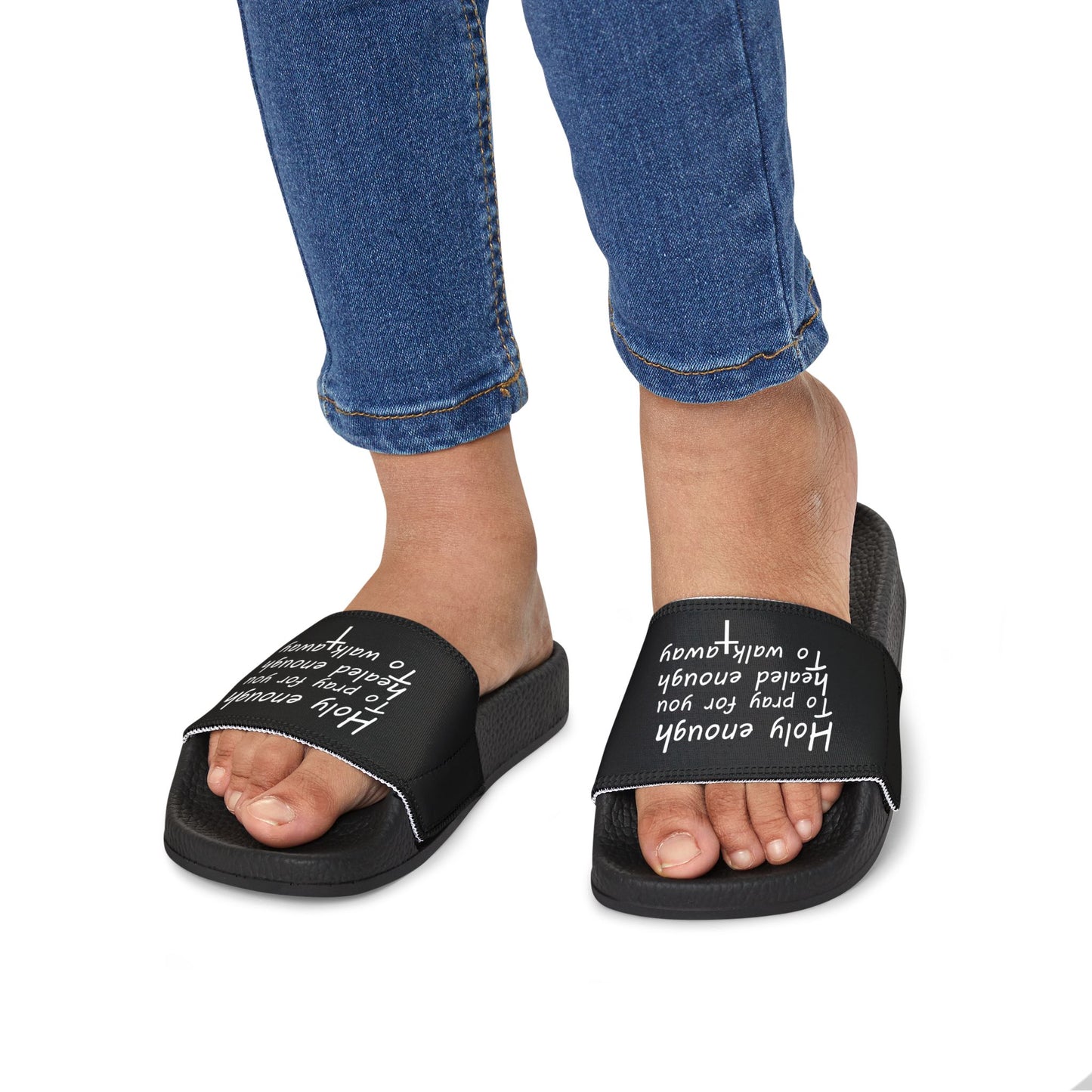 Youth Inspirational Slide Sandals - 'Holy Enough' Motivational Design
