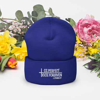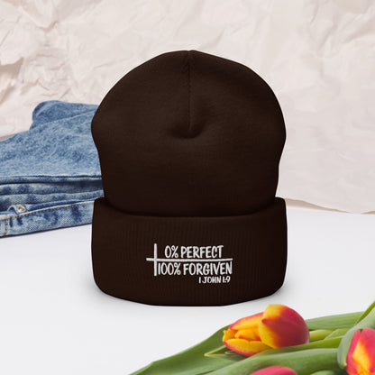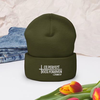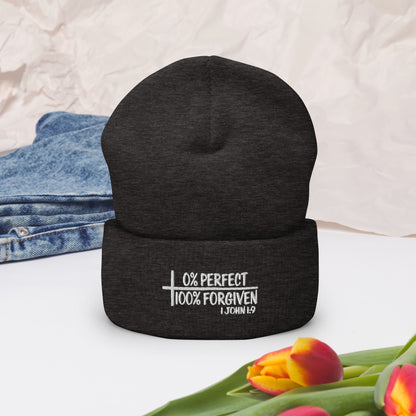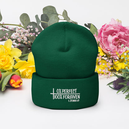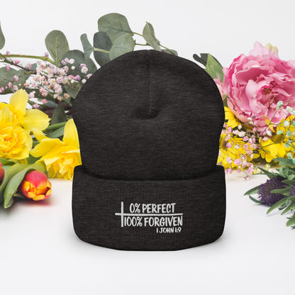 Zero Percent Perfect One Hundred Percent Forgiven Adult Christian Cuffed Beanie